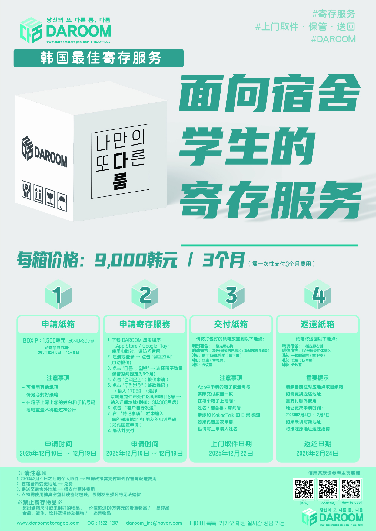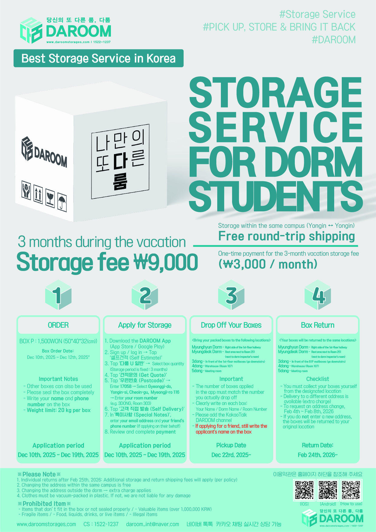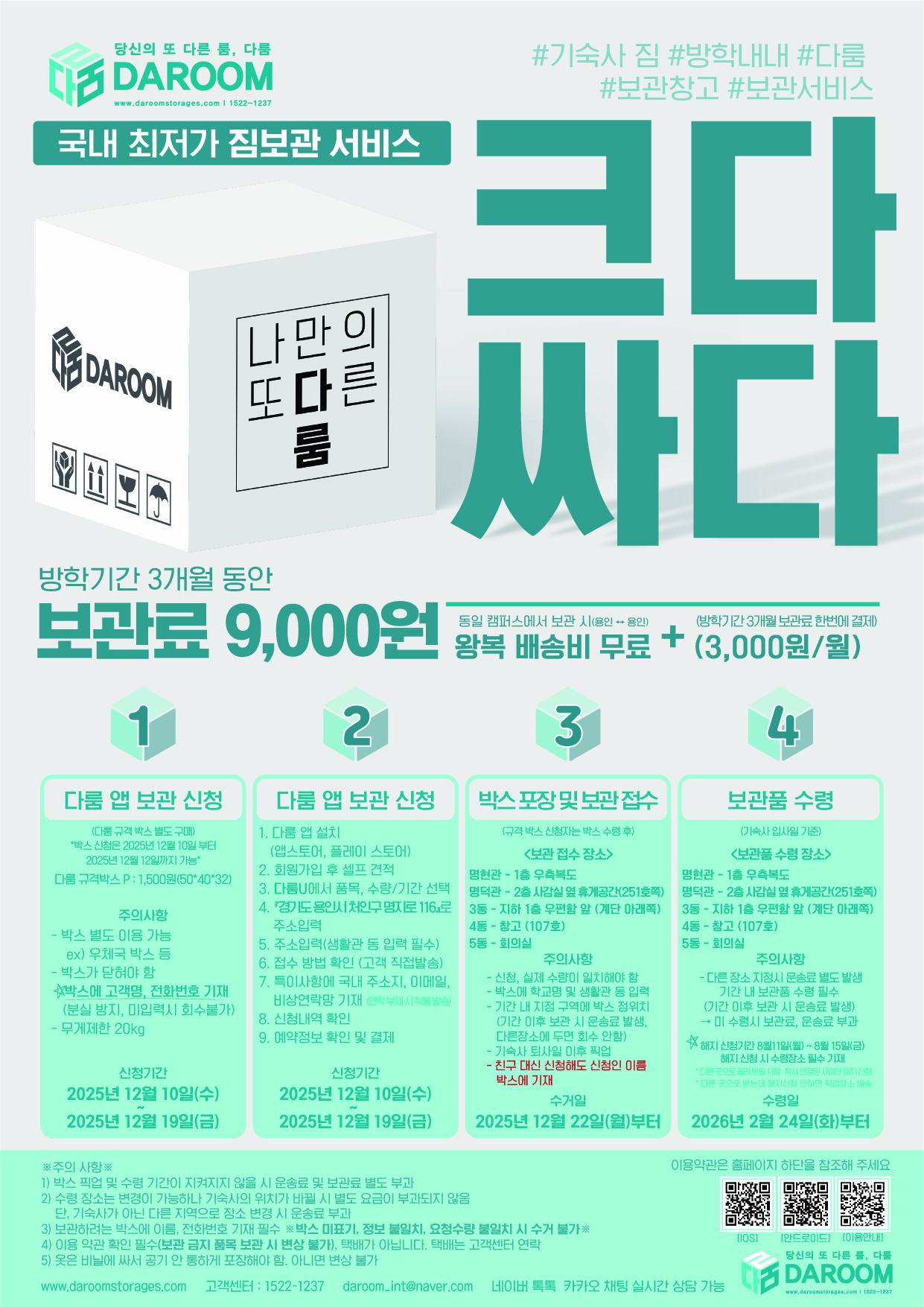 [자연]25-2학기 짐 보관 서비스 '다룸' 안내(Storage Service 'DAROOM')