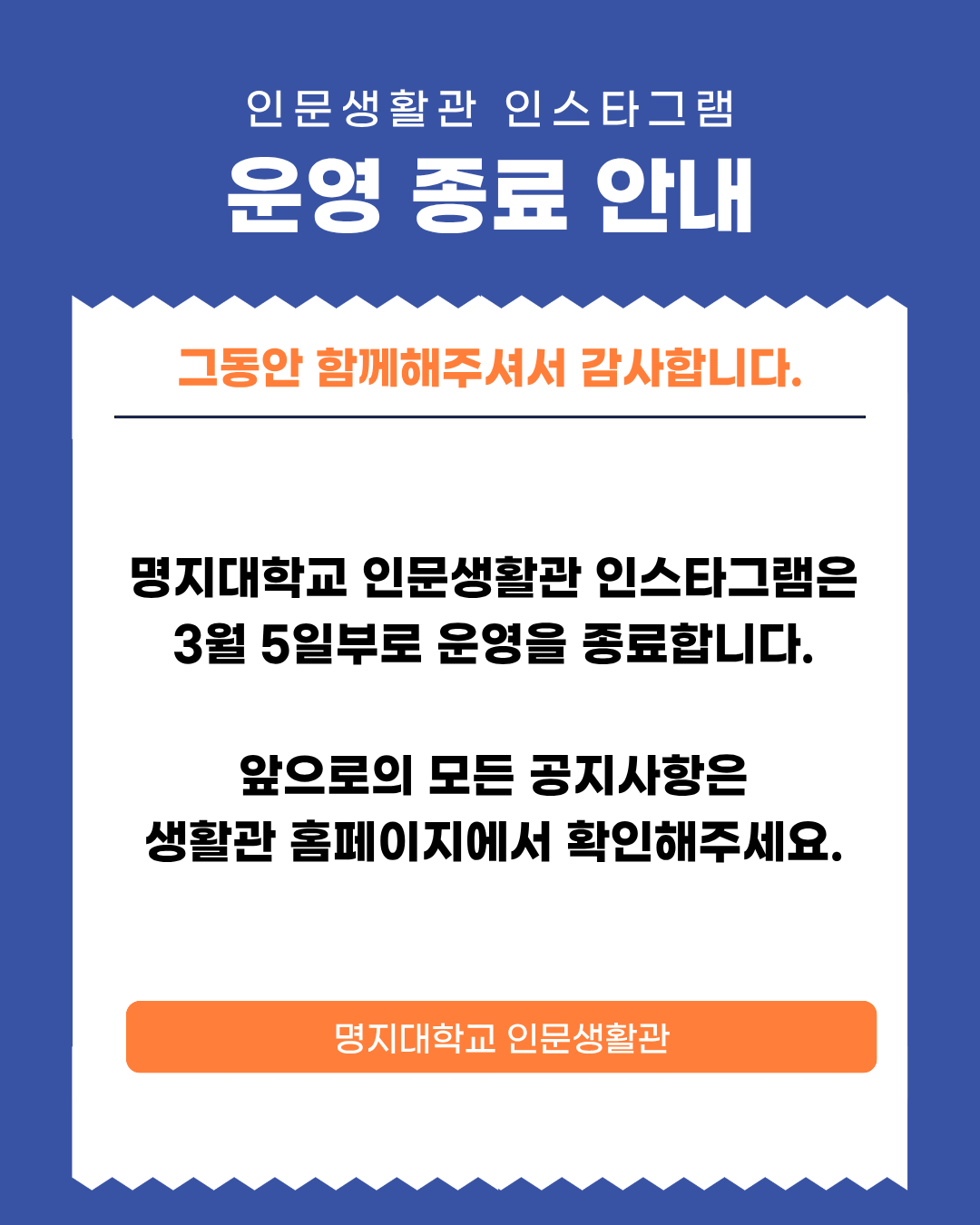 [인문] 생활관 인스타그램 운영 종료 안내