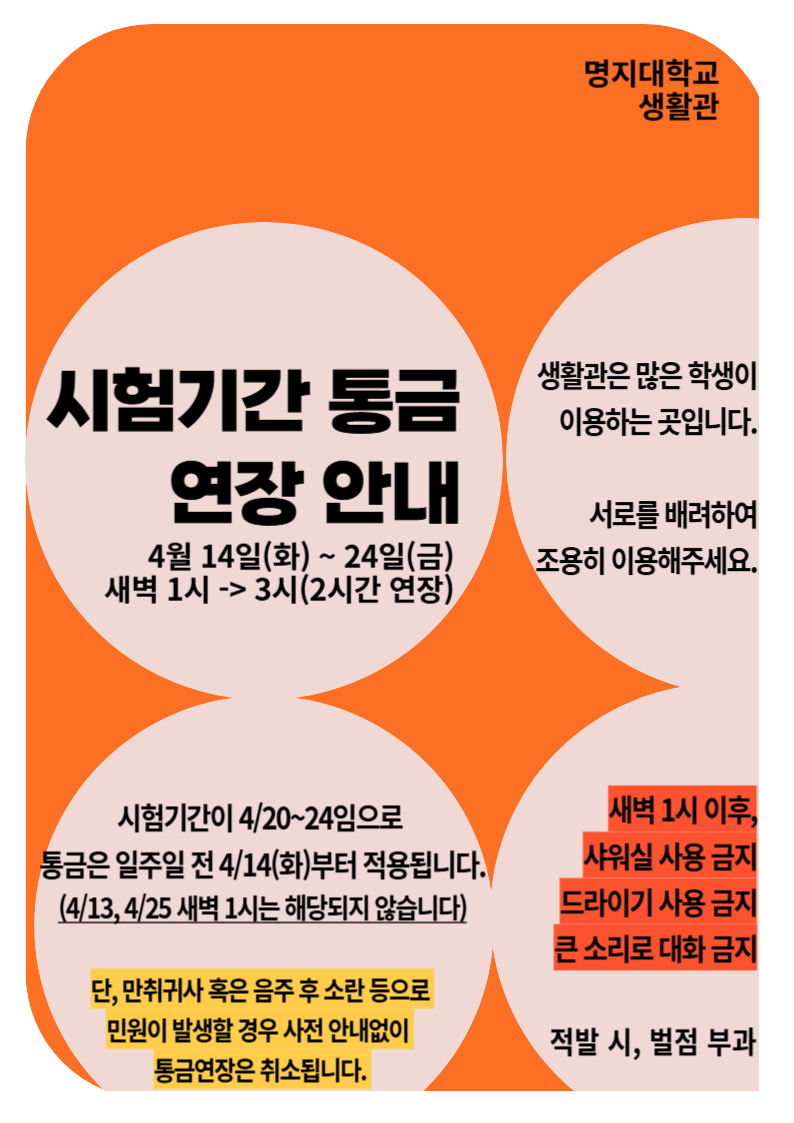 [자연] 2026년 1학기 중간고사기간 통금 연장 안내