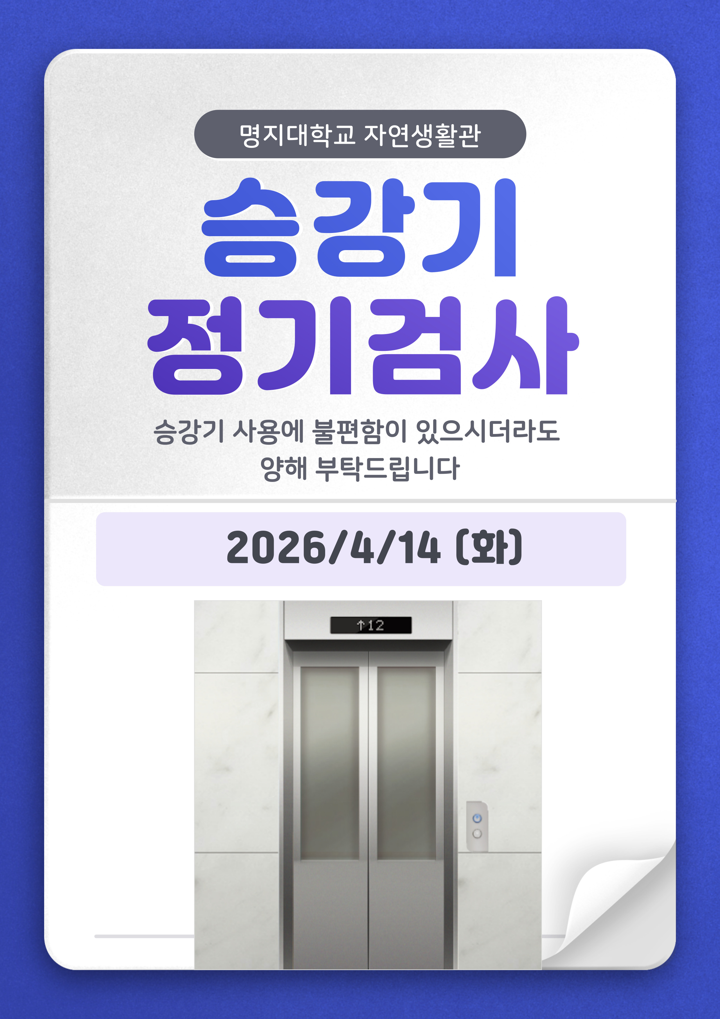 [자연] 2026년 4월 14일(화) 승강기 정기점검 안내