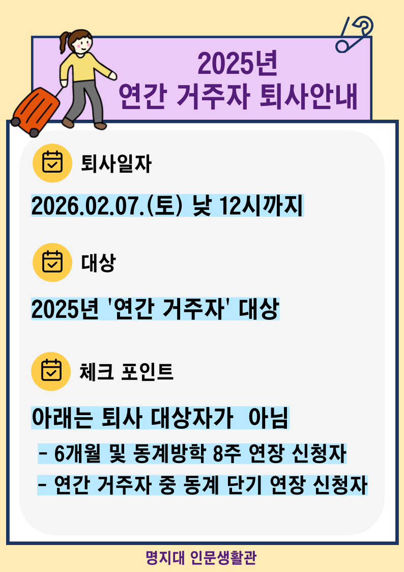 [인문] 인문생활관 2025년도 연간거주자 퇴사 안내