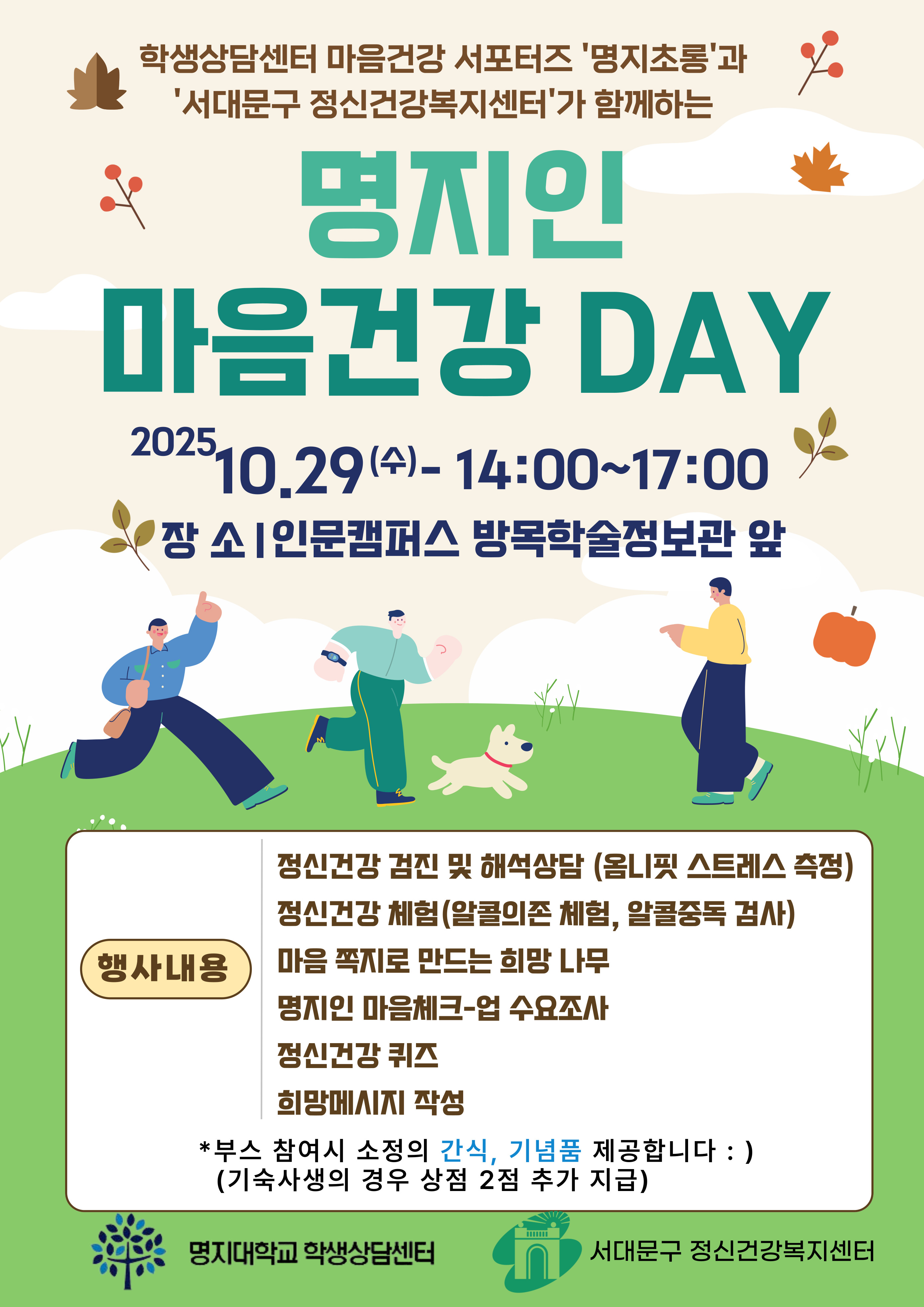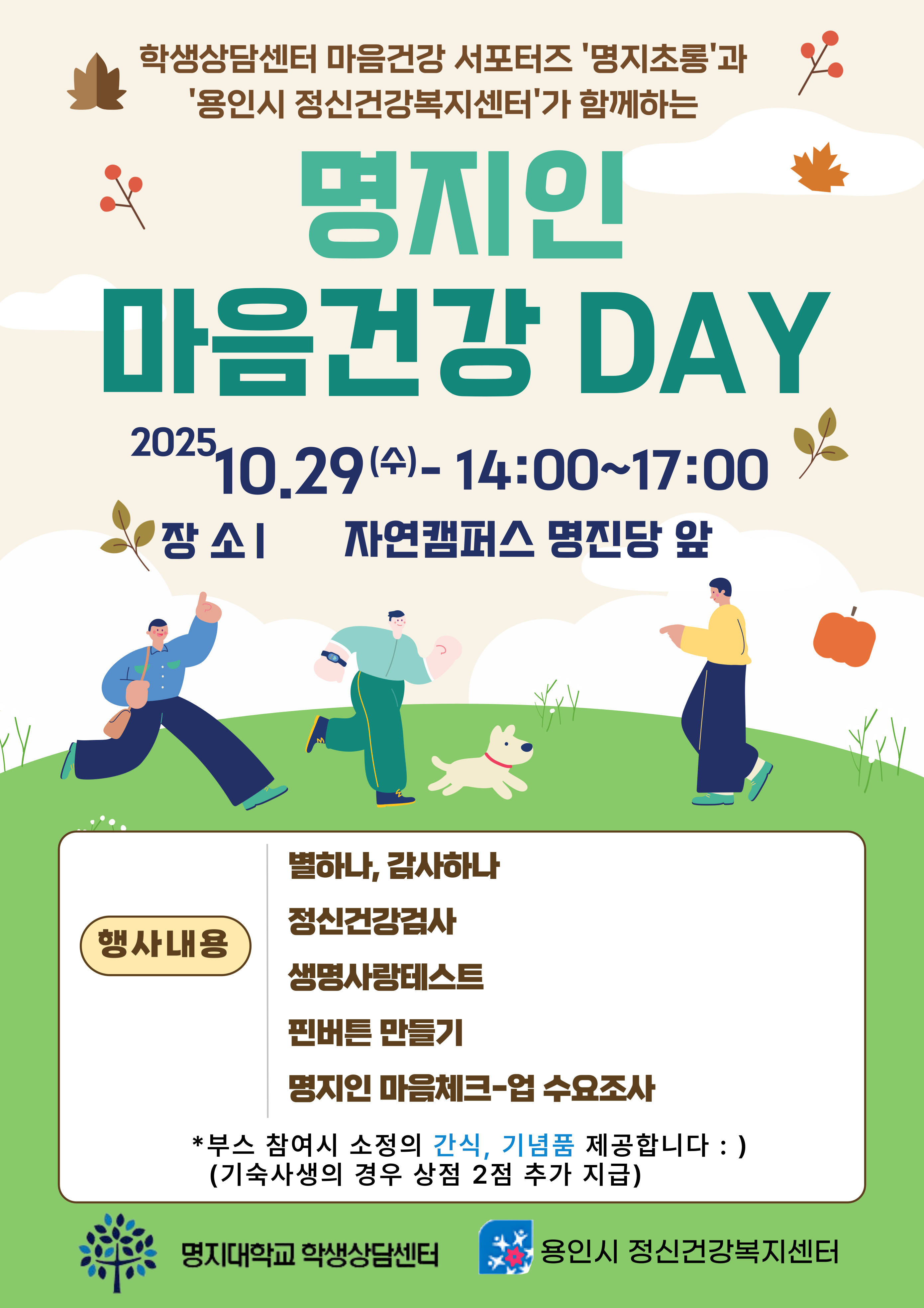 [학생상담센터] 2025-2 지역사회연계 캠페인 「명지인 마음건강 DAY」 행사 안내