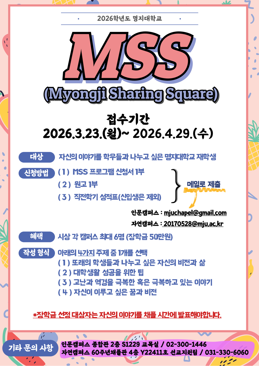 2026학년도 MSS(Myongji Sharing Square)프로그램 신청 안내